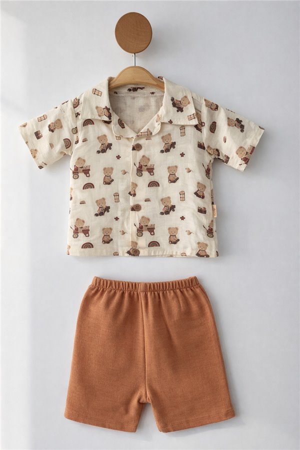 9-12-18 Ay Erkek Bebek Müslin Takım Kahverengi