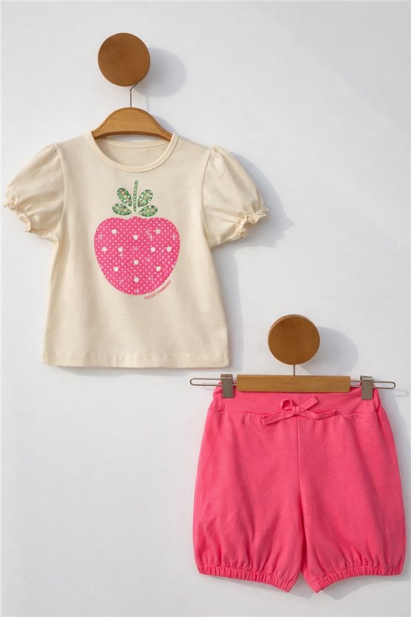 Deco 9-24 Ay Çilek Detaylı Yazlık Kız Bebek Takım Pembe