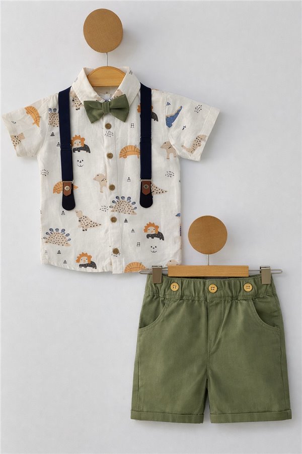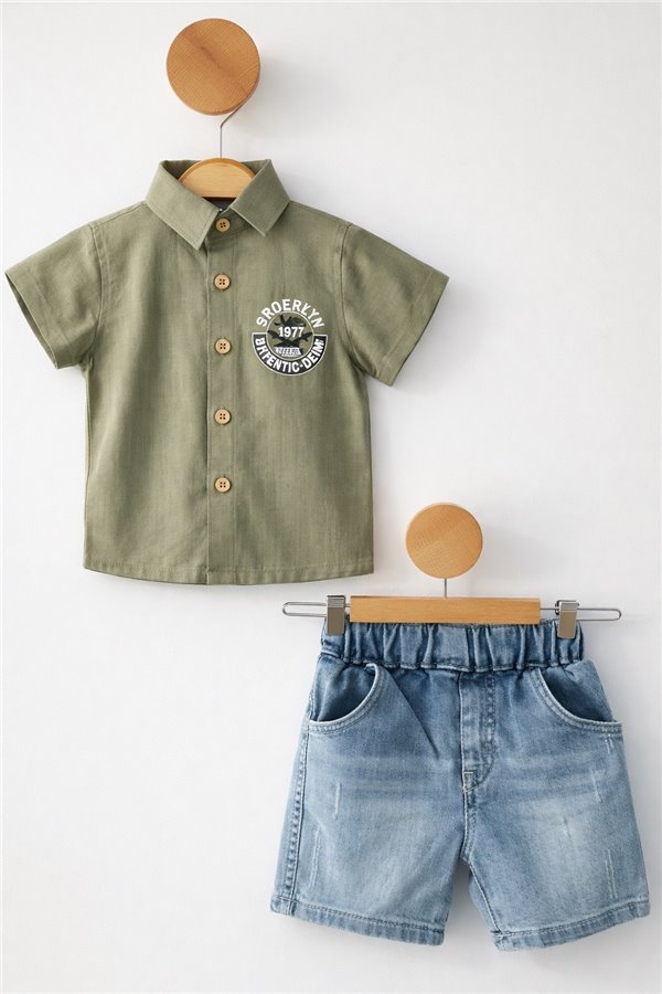 9-24 Ay Gömlekli Kot Şortlu Bebek Takım 1042 Haki