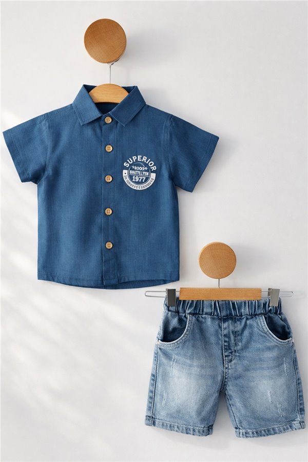 9-24 Ay Gömlekli Kot Şortlu Bebek Takım 1042 Lacivert