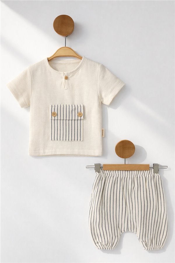 Dodo 9-24 Ay Önü Cepli Müslin Erkek Bebek Takım Bej