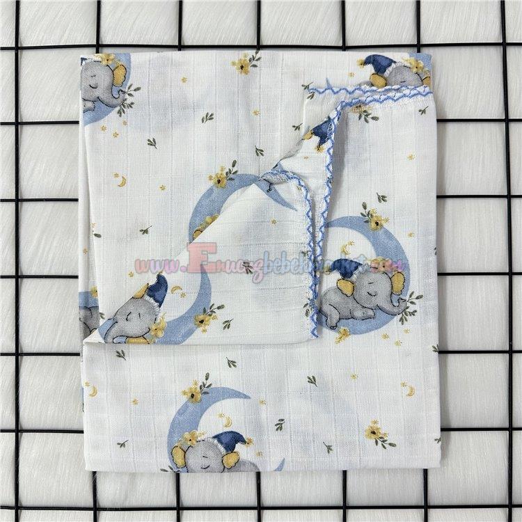 90X80 Cm Tek Kat Bebek Müslin Battaniye Fil Desen Mavi