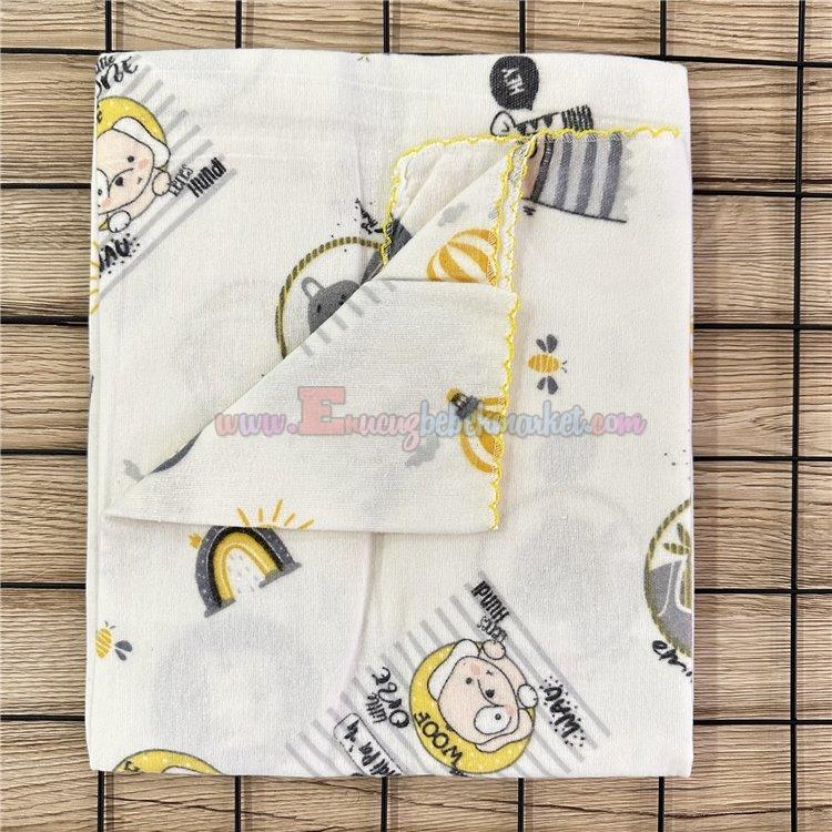 90X80 Cm Tek Kat Bebek Pazen Battaniye Balonlu Ayıcık Model Sarı