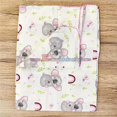 90X80 Cm Tek Kat Bebek Pazen Battaniye Koala Desen Pembe