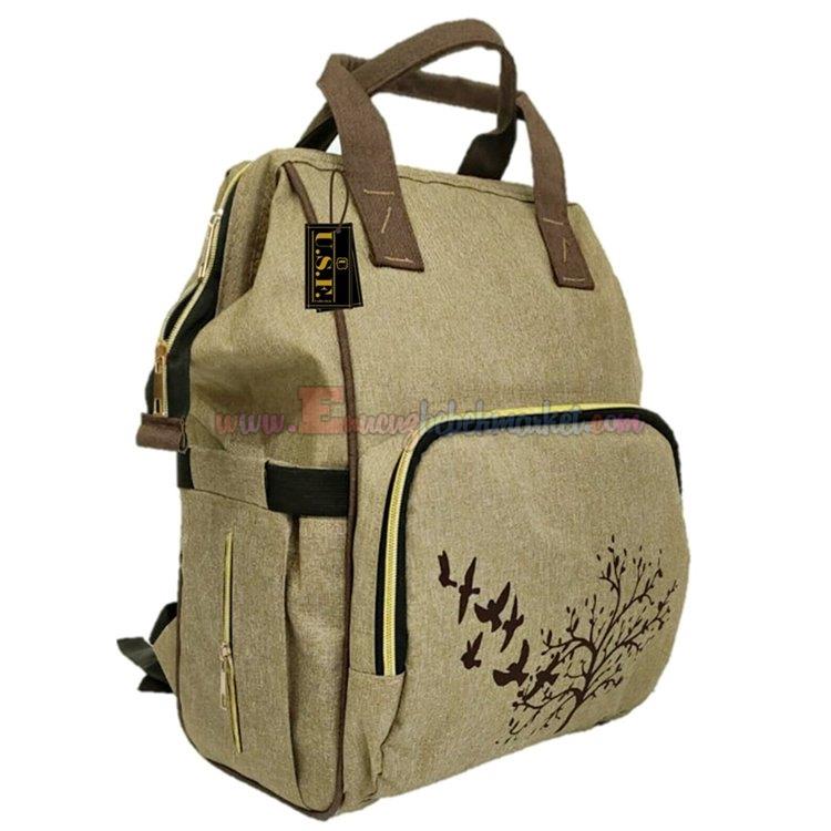 Anne Bebek Bakım Sırt Çantası Ağaç Baskılı Kahverengi
