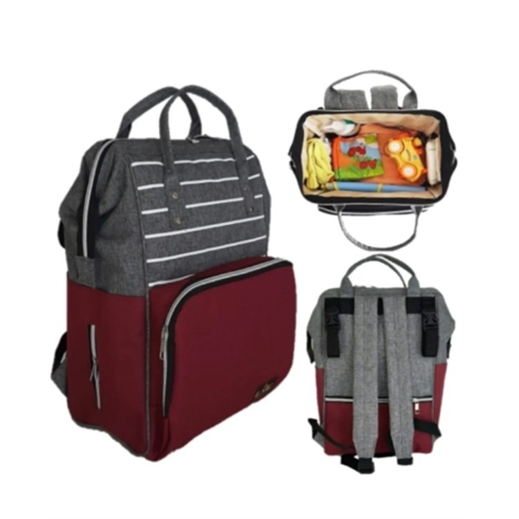 Anne Bebek Bakım Sırt Çantası Çizgili Renk Bordo