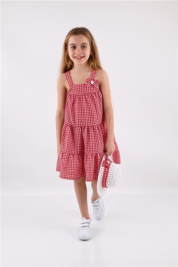 Ant Kids 3-10 Yaş Pötikare Şapkalı Kız Çocuk Elbise Kırmızı
