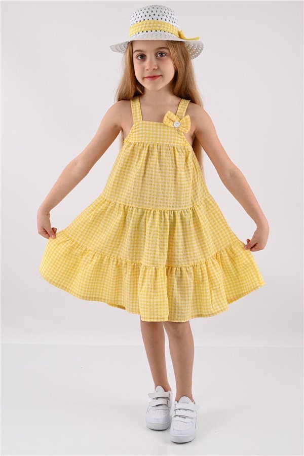 Ant Kids 3-10 Yaş Pötikare Şapkalı Kız Çocuk Elbise Sarı