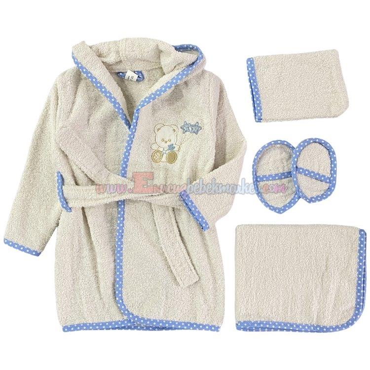 Askıda 1-2-3 Yaş 4'Lü Bornoz Seti Ayıcık Mavi Beyaz