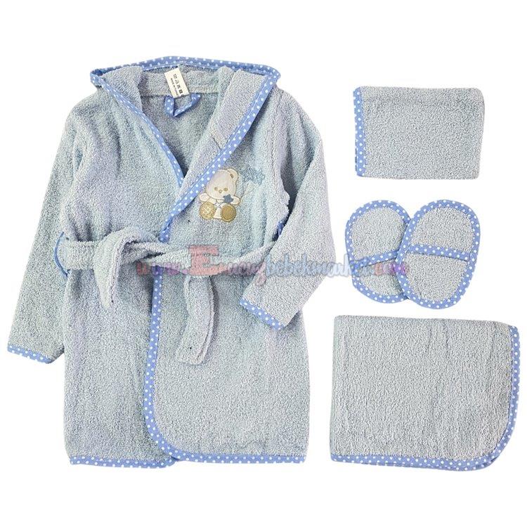 Askıda 1-2-3 Yaş 4'Lü Bornoz Seti Ayıcık Mavi