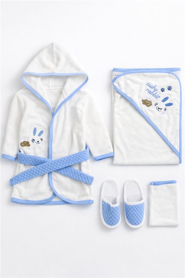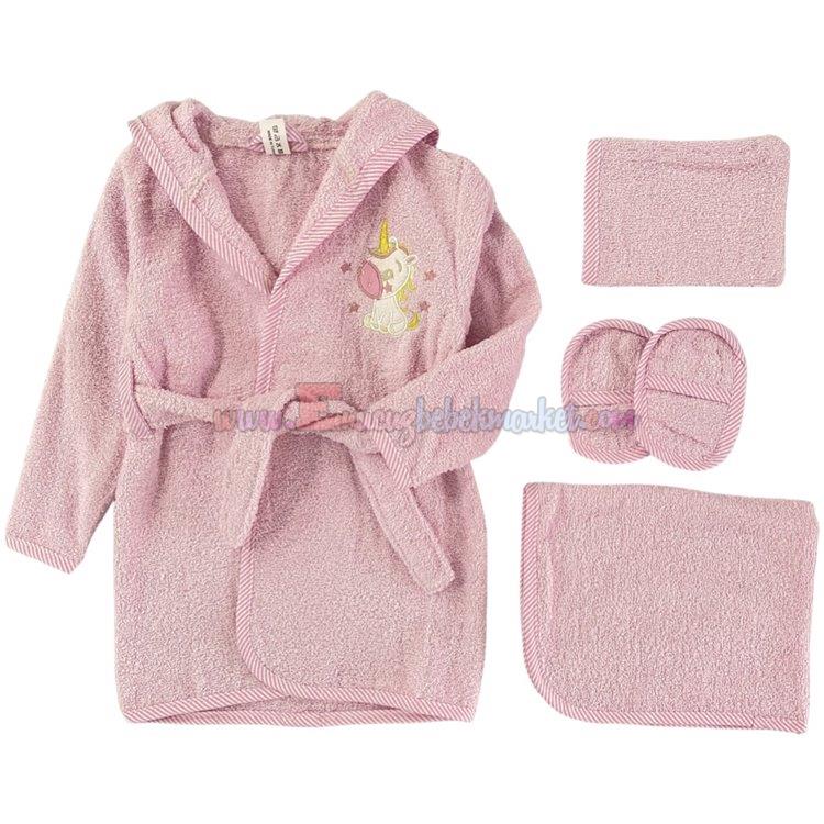 Askıda 1-2-3 Yaş 4'Lü Bornoz Seti Uni. Pembe