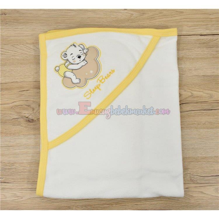 Aymix Baby 90X80 Cm Sleep Bear Nakışlı Bebek Banyo Havlusu Sarı