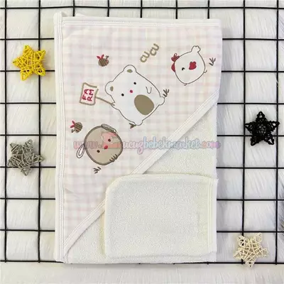 Baby Bal 75X75 Cm Ekoseli Bebek Banyo Havlusu Pembe