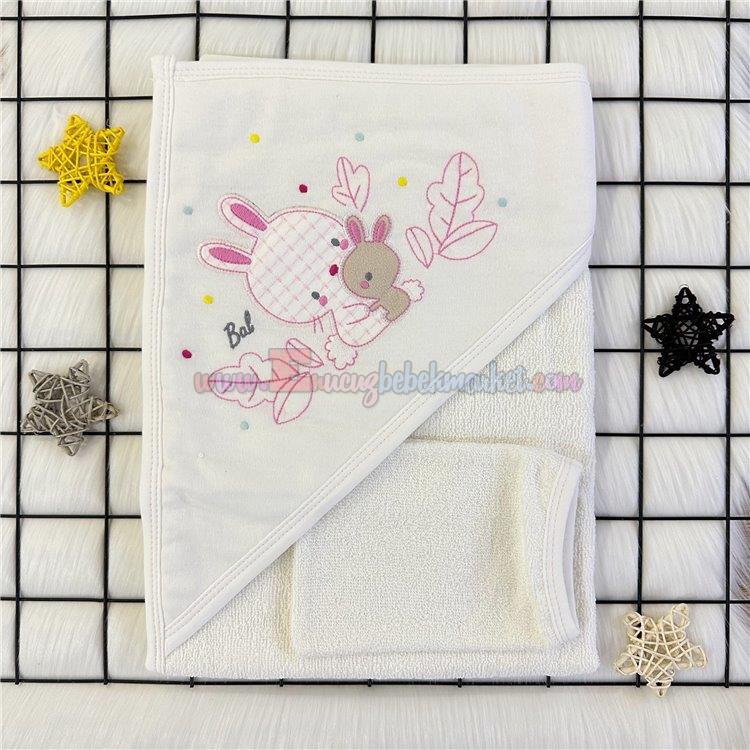 Baby Bal 75X75 Cm Tavşan Bebek Banyo Havlusu Pembe