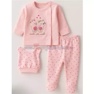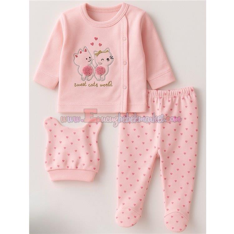 Baby Can 0-3 Ay Kalpli Kedi 3'Lü Bebek Takım Pembe