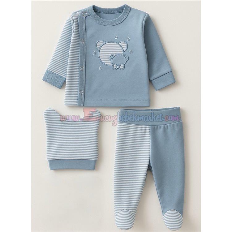 Baby Can 0-3 Ay Yıldızlı Ayıcık 3'Lü Bebek Takım Mavi