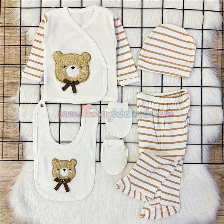 Baby Zuhu 0-3 Ay Çizgili Ayıcık 5 Parça Zıbın Takım Kahve