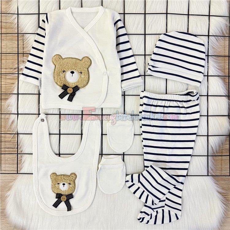 Baby Zuhu 0-3 Ay Çizgili Ayıcık 5 Parça Zıbın Takım Lacivert