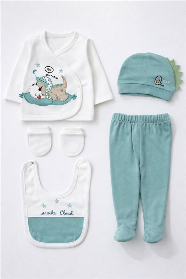 Baby Zuhu 0-3 Ay Dino 5 Parça Zıbın Takım Mint Yeşili