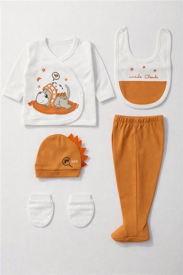 Baby Zuhu 0-3 Ay Dino 5 Parça Zıbın Takım Turuncu