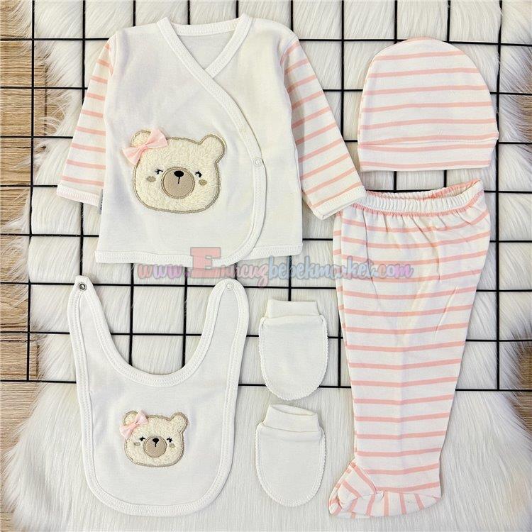 Baby Zuhu 0-3 Ay Fiyonklu Ayıcık 5 Parça Zıbın Takım Somon