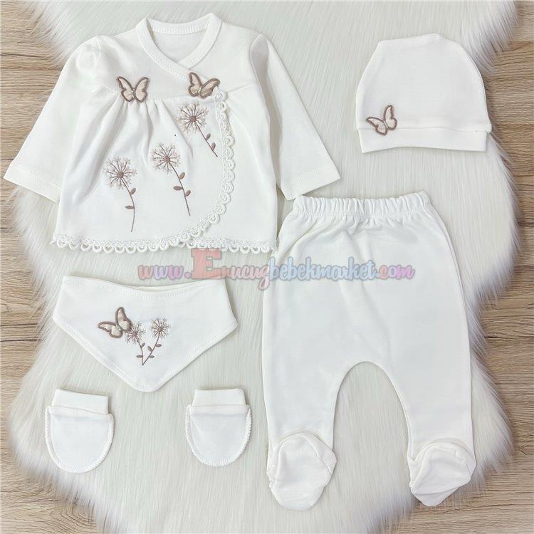 Baby Zuhu 0-3 Ay Kelebekli 5 Parça Zıbın Takım Krem