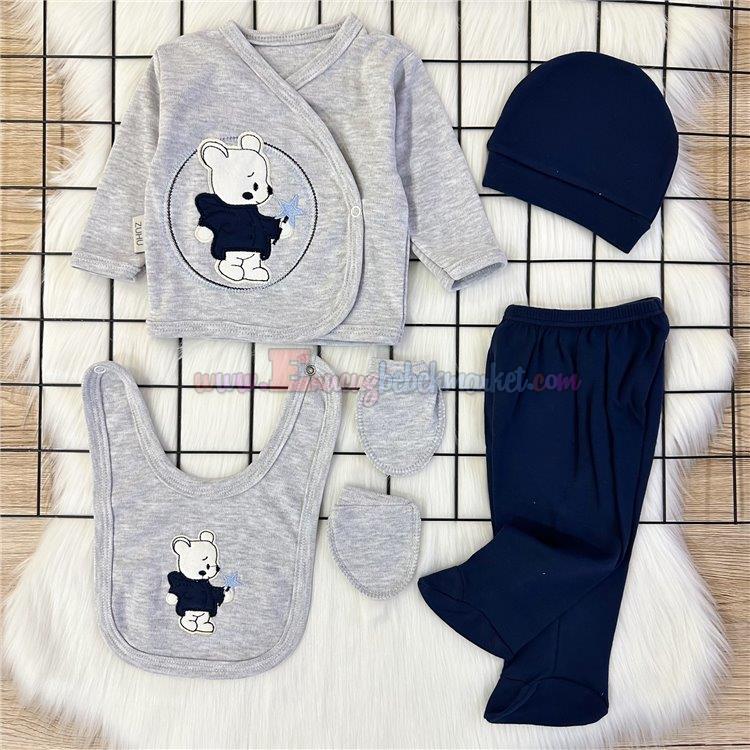 Baby Zuhu 0-3 Ay Yıldızlı Ayıcık 5 Parça Zıbın Takım Lacivert