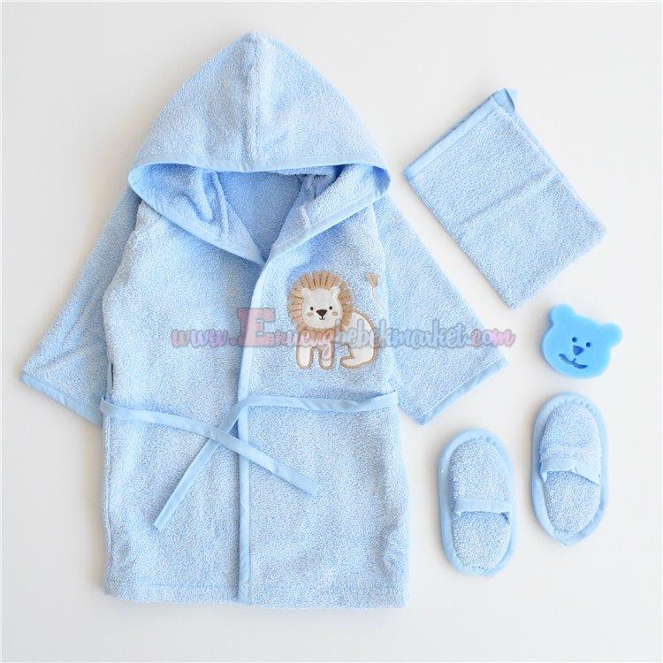 Babydo 1-2 Yaş Bebek Bornoz Set Aslan Figürlü Mavi