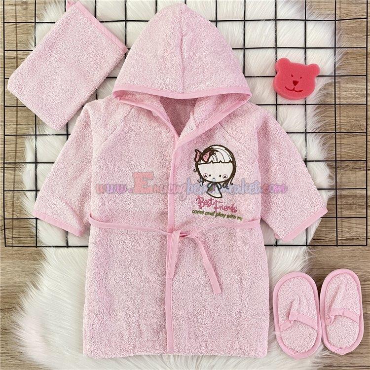 Babydo 1-2 Yaş Bebek Bornoz Set Fiyonklu Kız Pembe