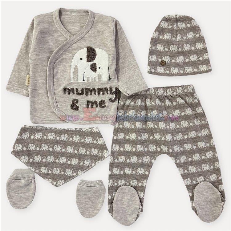 Babyim 0-3 Ay 5 Parça Zıbın Takım Fil Nakışlı Kahverengi