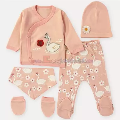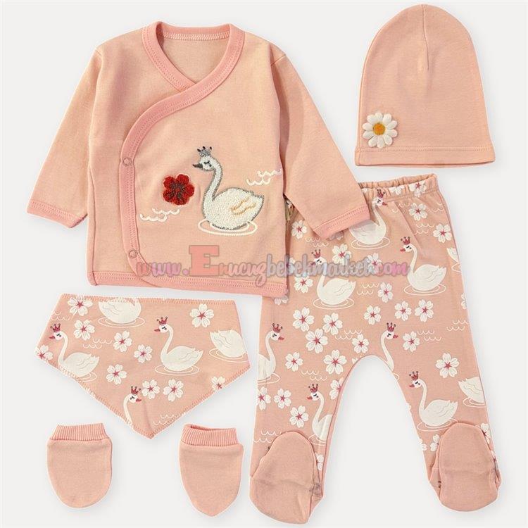 Babyim 0-3 Ay 5 Parça Zıbın Takım Kuğulu Somon