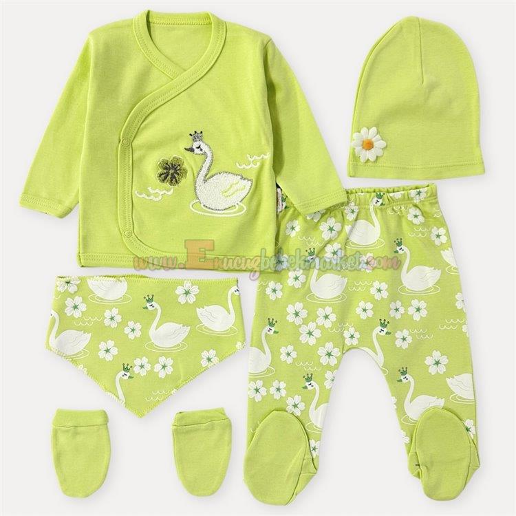 Babyim 0-3 Ay 5 Parça Zıbın Takım Kuğulu Yeşil