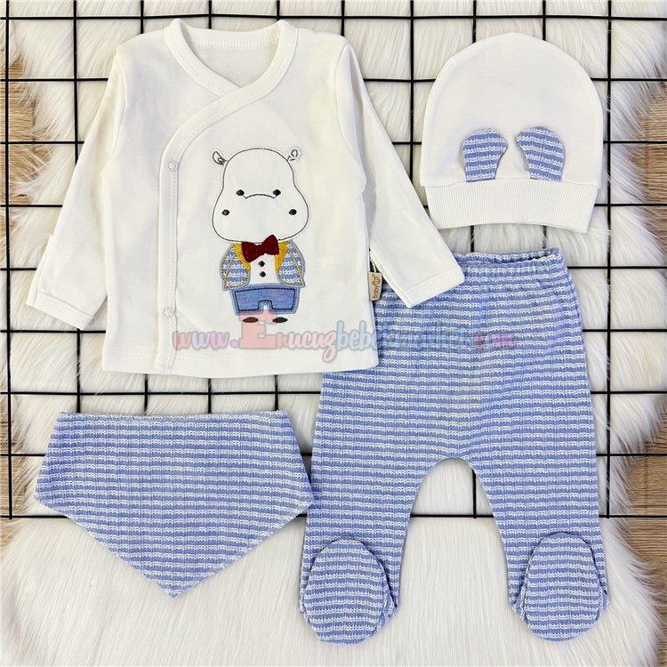 Babyim 0-3 Ay Ayıcıklı 4 Parça Zıbın Takım Mavi