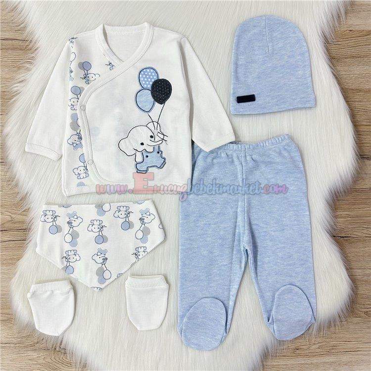 Babyim 0-3 Ay Balonlu Fil 5'Li Penye Zıbın Takım Mavi