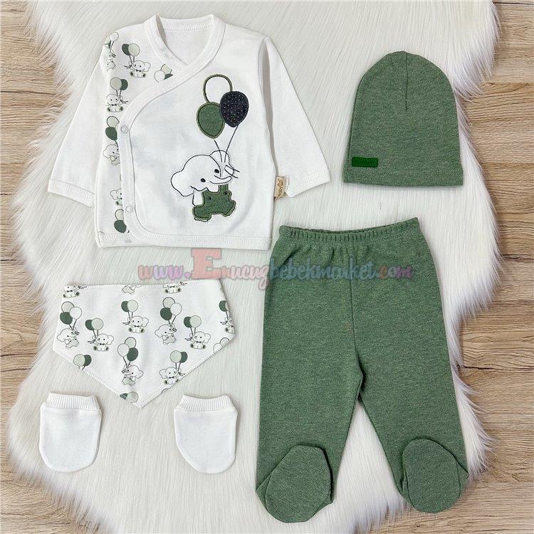 Babyim 0-3 Ay Balonlu Fil 5'Li Penye Zıbın Takım Yeşil