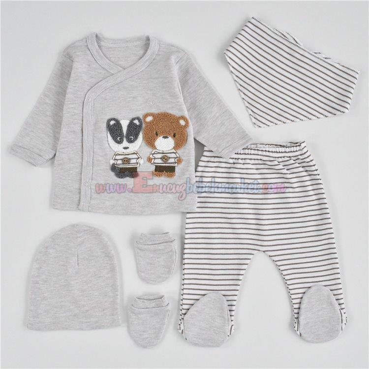 Babyim 0-3 Ay Rakun Nakışlı 5 Parça Zıbın Takım Bej