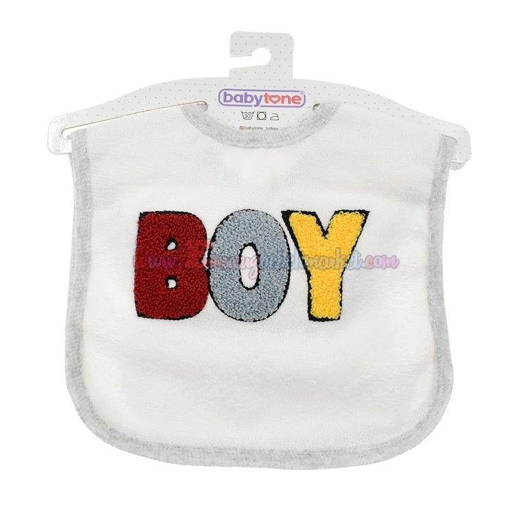 Babytone 3-12 Ay Süzineli Boy Yazılı Bebek Önlük Gri