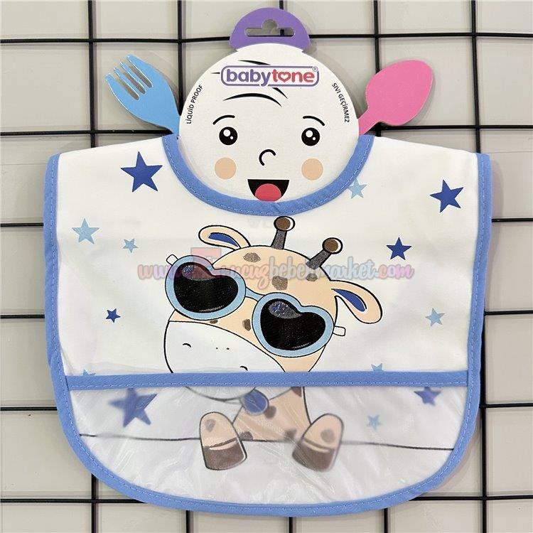 Babytone 6-18 Ay Cepli Zürafa Figürlü Bebek Önlük Mavi