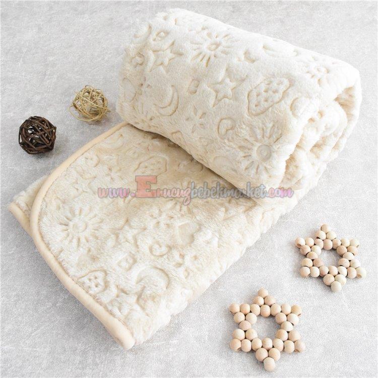 Bahar 100X120 Cm Kışlık Bebek Battaniye Kalpli Desen Kırık Beyaz