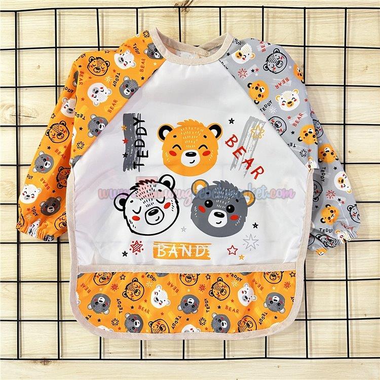 Bebechi 2-3-4 Yaş Kollu Giyilebilir Önlük Ayıcıklı Baskılı Sarı