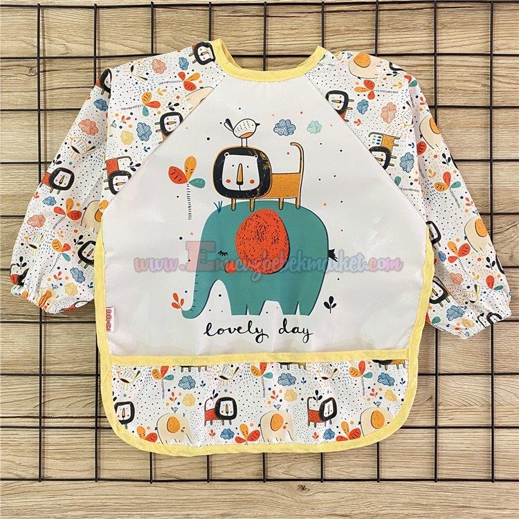 Bebechi 2-3-4 Yaş Kollu Giyilebilir Önlük Fil Baskılı Sarı