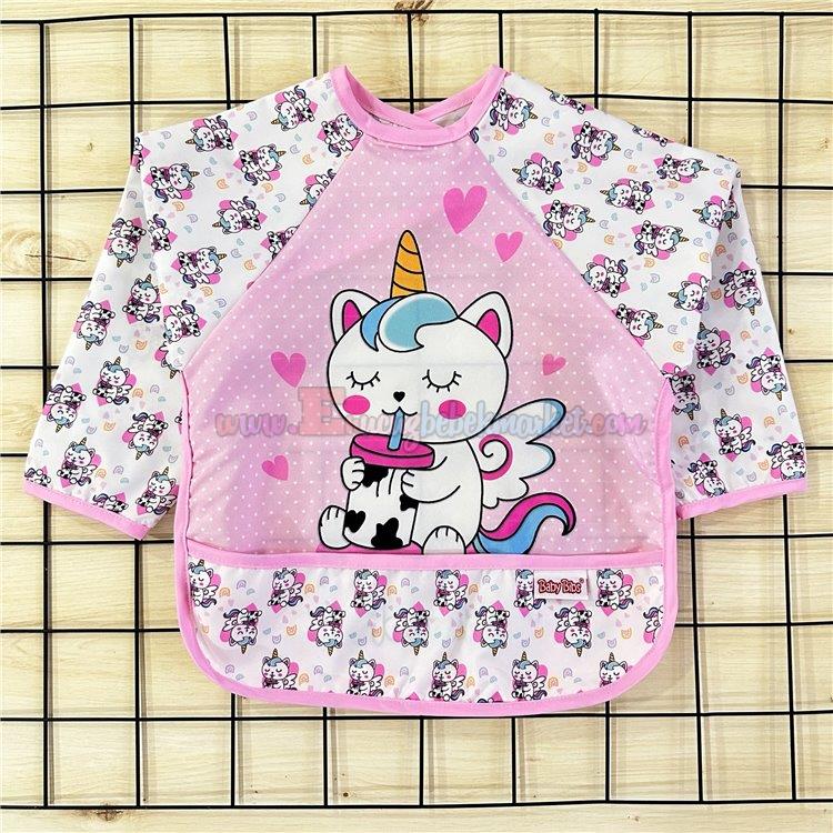Bebechi 2-3-4 Yaş Kollu Giyilebilir Önlük Kedi Baskılı Pembe