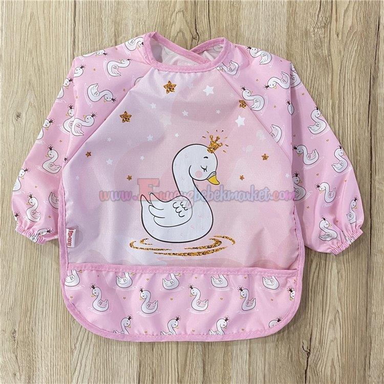 Bebechi 2-3-4 Yaş Kollu Giyilebilir Önlük Kuğu Baskılı Pembe