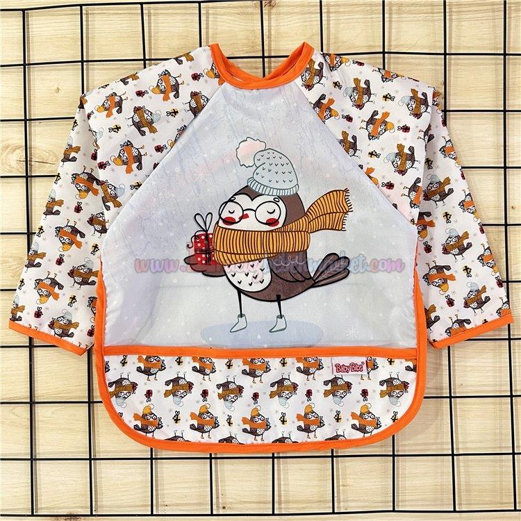 Bebechi 2-3-4 Yaş Kollu Giyilebilir Önlük Kuş Baskılı Turuncu