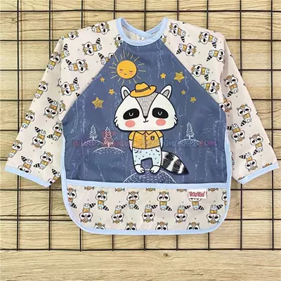 Bebechi 2-3-4 Yaş Kollu Giyilebilir Önlük Rakun Baskılı Mavi