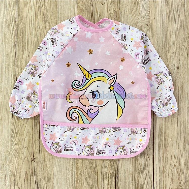 Bebechi 2-3-4 Yaş Kollu Giyilebilir Önlük Uni. Baskılı Pembe