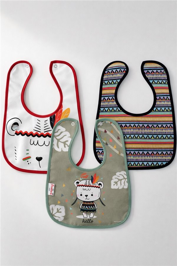 Bebechi 3-12 Ay 3'Lü Bebek Mama Önlüğü Ayı Desenli