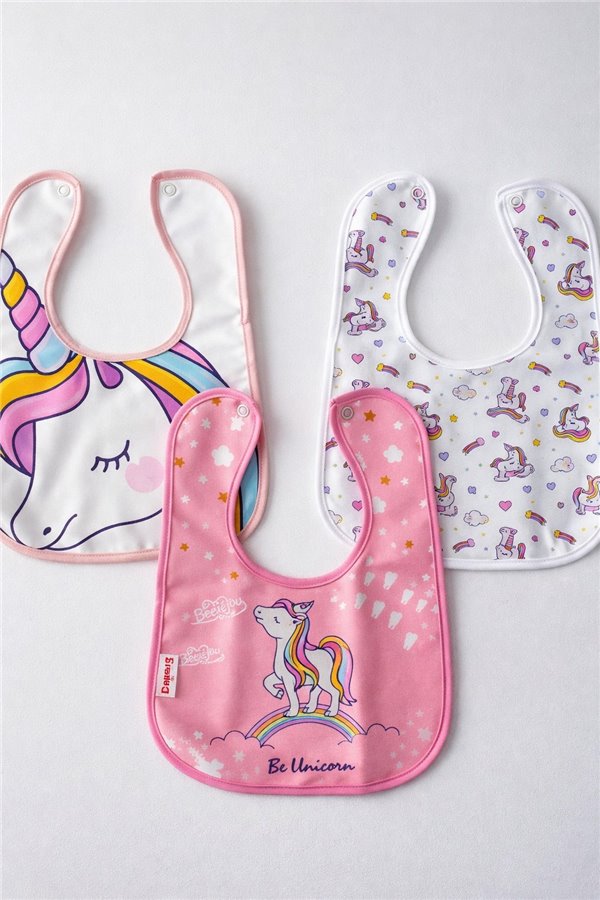 Bebechi 3-12 Ay 3'Lü Bebek Mama Önlüğü Ayı Desenli Pembe