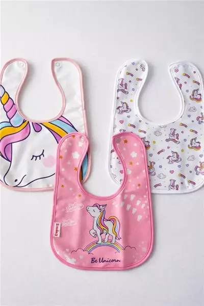 Bebechi 3-12 Ay 3'Lü Bebek Mama Önlüğü Kuğulu Pembe