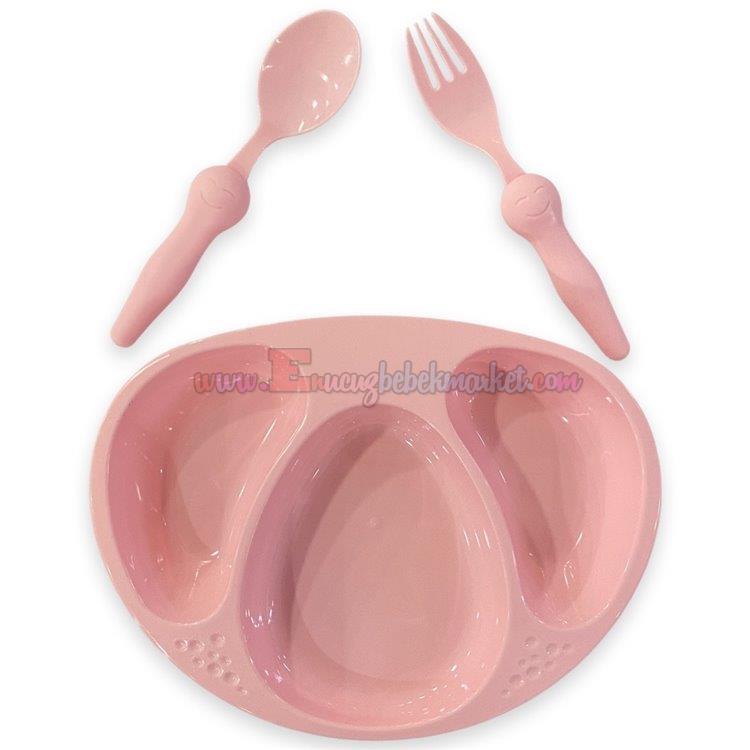 Bebekevi Üç Bölmeli Mama Tabağı Seti Pembe